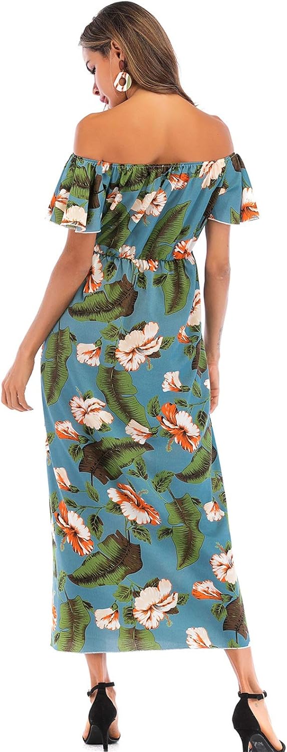 レディース リゾートワンピース 夏の長いマキシのドレス花柄のショルダービーチのドレス ビーチ。