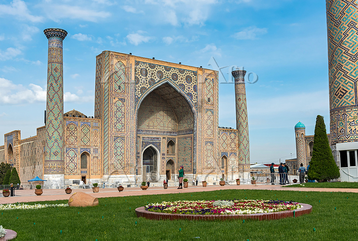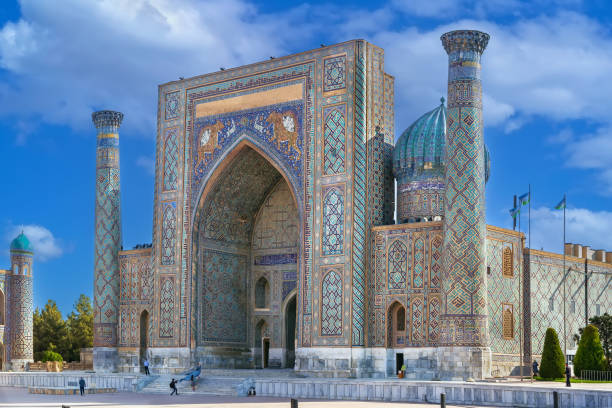 ウズベキスタンの古都サマルカンドのレギスタン広場に建つシェル・ドル・マドラサ 写真素材6585157- フォトライブラリ。