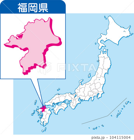 福岡県の地図_カラー日本地図_40_ 日本地図の中で福岡県はここ_県別拡大日本地図_福岡県のイラスト素材104115004- PIXTA。