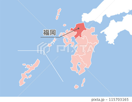 日本列島 日本地図 福岡県 マップのイラスト素材 -。