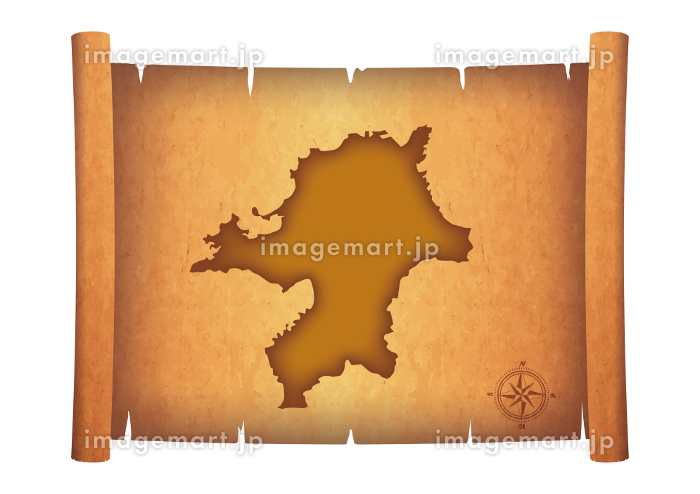 古い巻物に描かれた福岡県の地図のイラスト 日本地図 お宝の地図のイメージイラスト アンティーク169515875-。