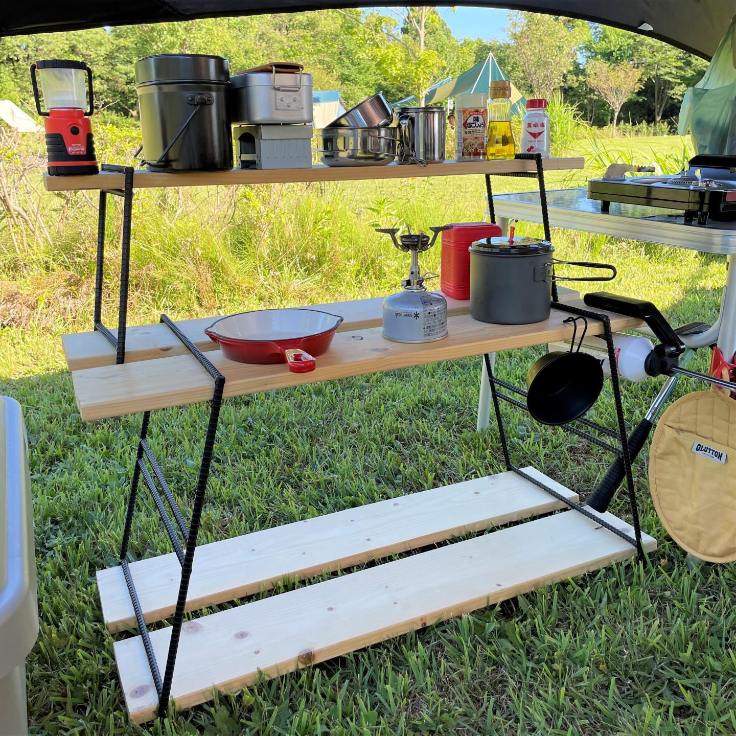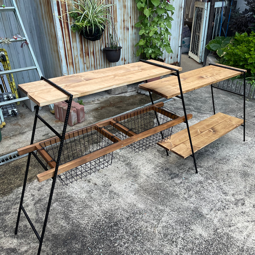 アイアンラック キャンプテーブル キッチンテーブル シェルフ①。