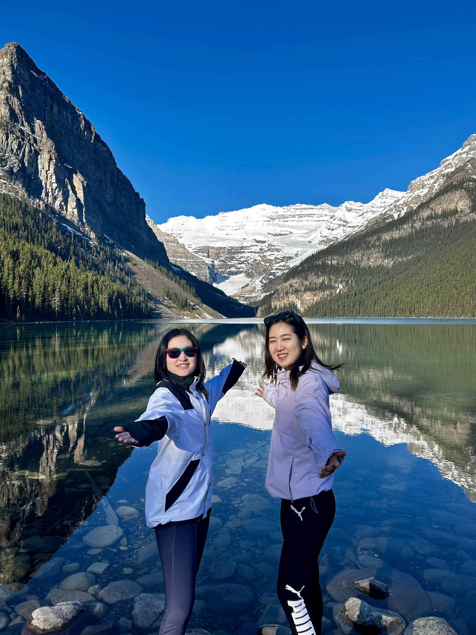 この幻想的なレイクルイーズを見よ🇨🇦 日の出を迎えるために湖畔で待機😱 とても寒かったが、待っててよかったと思えました✨この奥行き感が素晴らしかったレイクルイーズlakelouisebanffバンフcanadaカナダ旅行カナディアンロッキ。