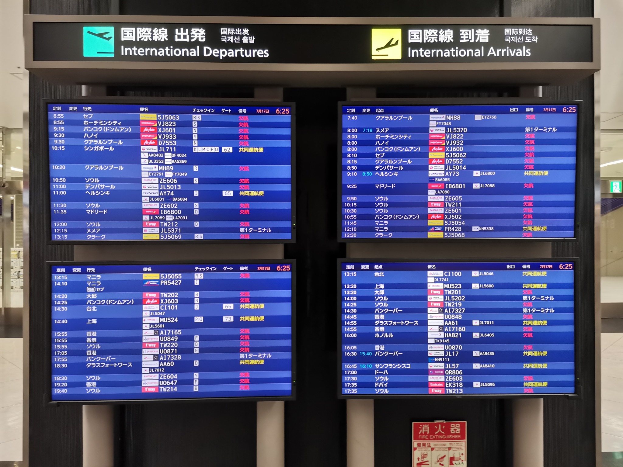 新型コロナの影響を受けた早朝の成田空港第2ターミナルの様子2020年7月17日。