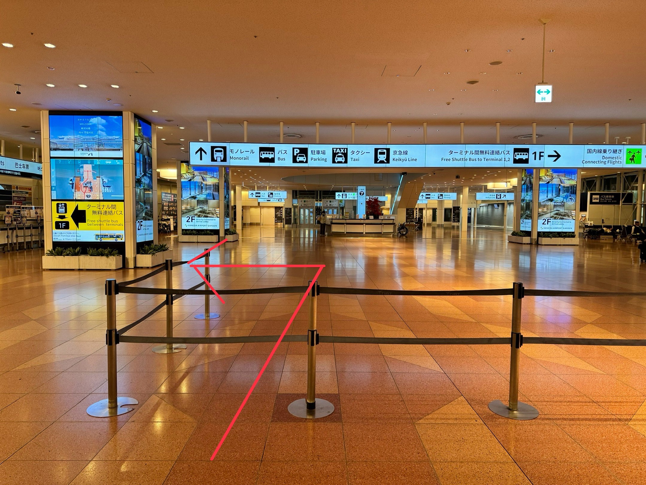 到着手続き国際線ご利用フライト羽田空港旅客ターミナル。