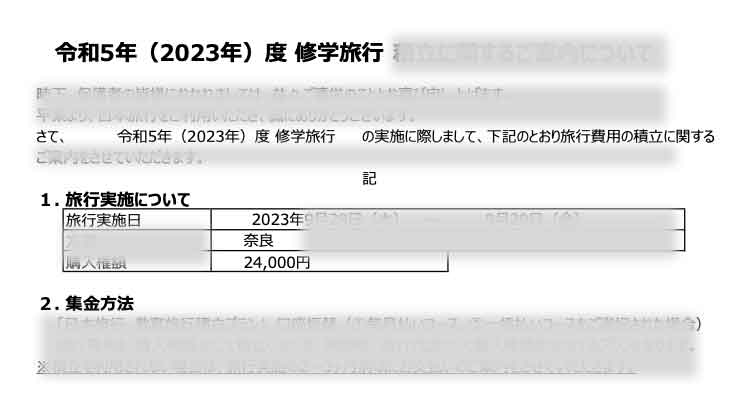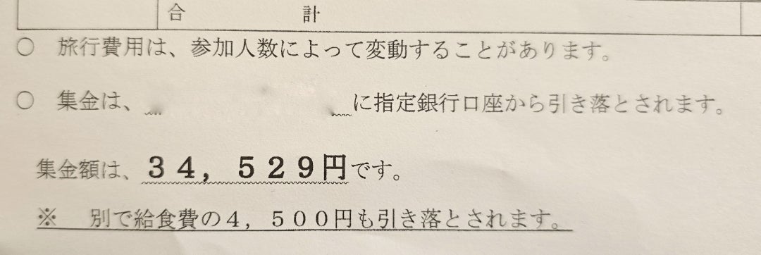 小学校の修学旅行の費用 2024年10月4人目中絶を辞めて出産→パイプカット◇共働き夫婦の4人育児。