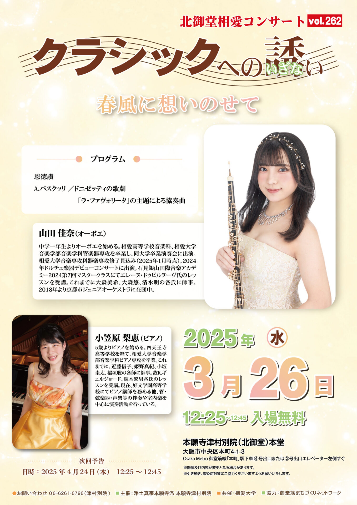 北御堂コンサートvol.262〜春風に想いのせて〜開催 2025 3 26– 一般社団法人。