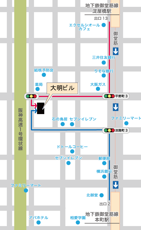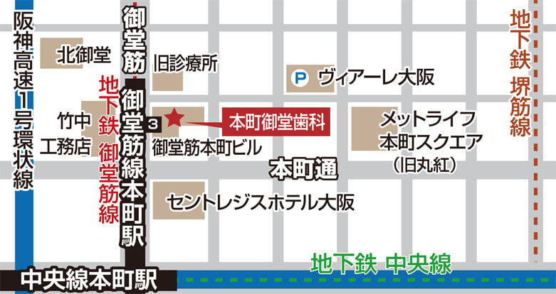 アクセス中央区本町で歯周病、短期治療なら本町御堂歯科。