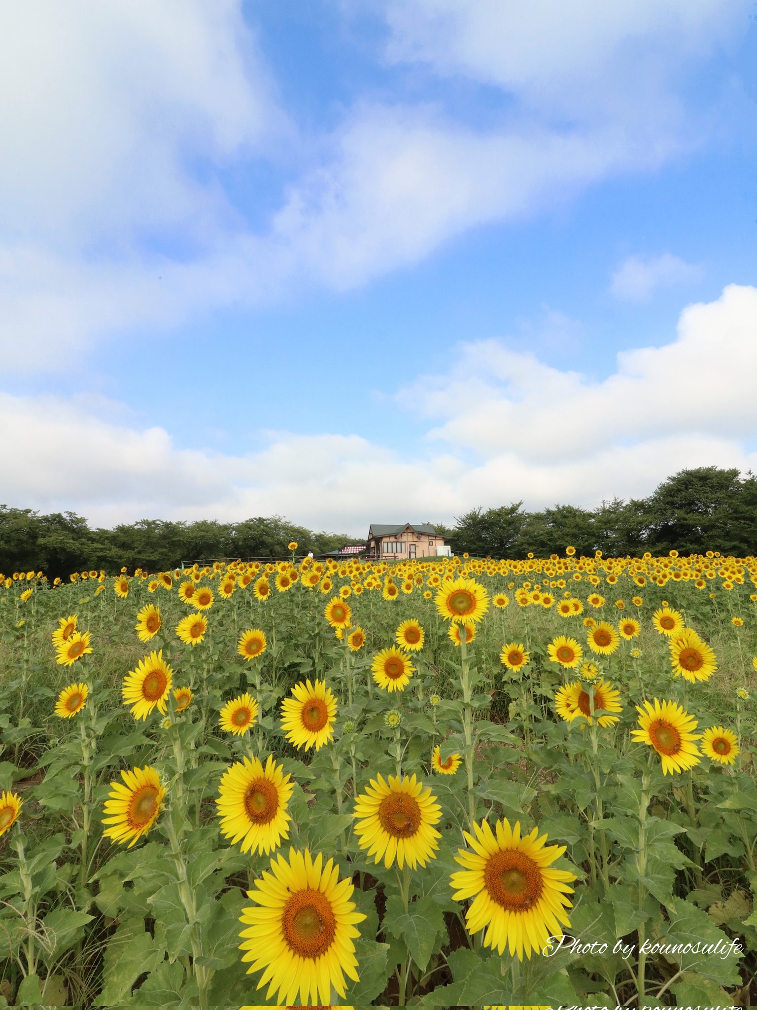📸Macopin今日の出来事を過去の思い出にعلى X: "今朝の東松山市農林公園~丘の上のカフェ、ひまわり畑から。ひまわり畑。