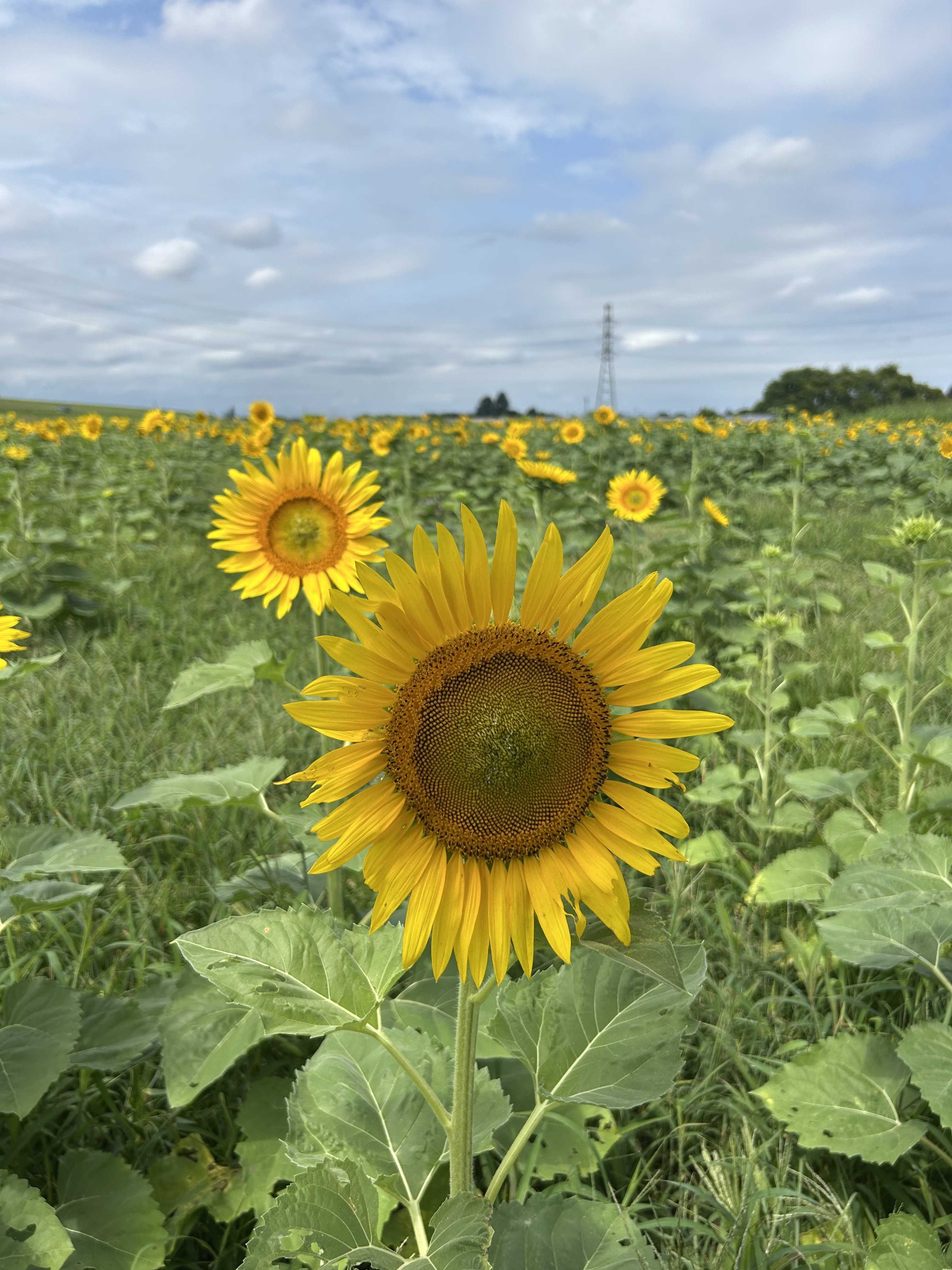 2024.8.12 埼玉県東松山市東松山市農林公園 ひまわりの咲く丘🌻青空に映える黄色のひまわりたちが一面に咲き誇り、開花も進んでまさに絶景!。高台に広がる風景は圧巻で、丘の上にあるカフェがさらにワンポイントだね!。 今年は背丈が高い感じなので、ひまわりに。