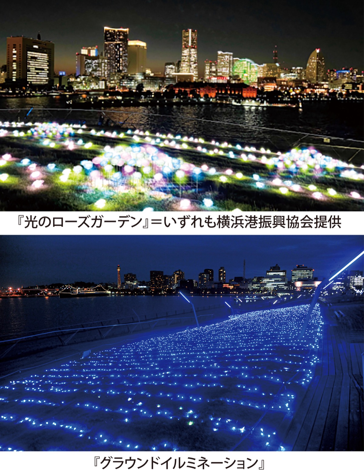 横浜港大さん橋 2種類イルミで幻想的に 夜景とともに楽しむ中区・西区・南区タウンニュース。