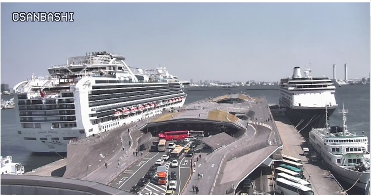 横浜大桟橋に2隻の外国船停泊! DIAMOND PRINCESS。
