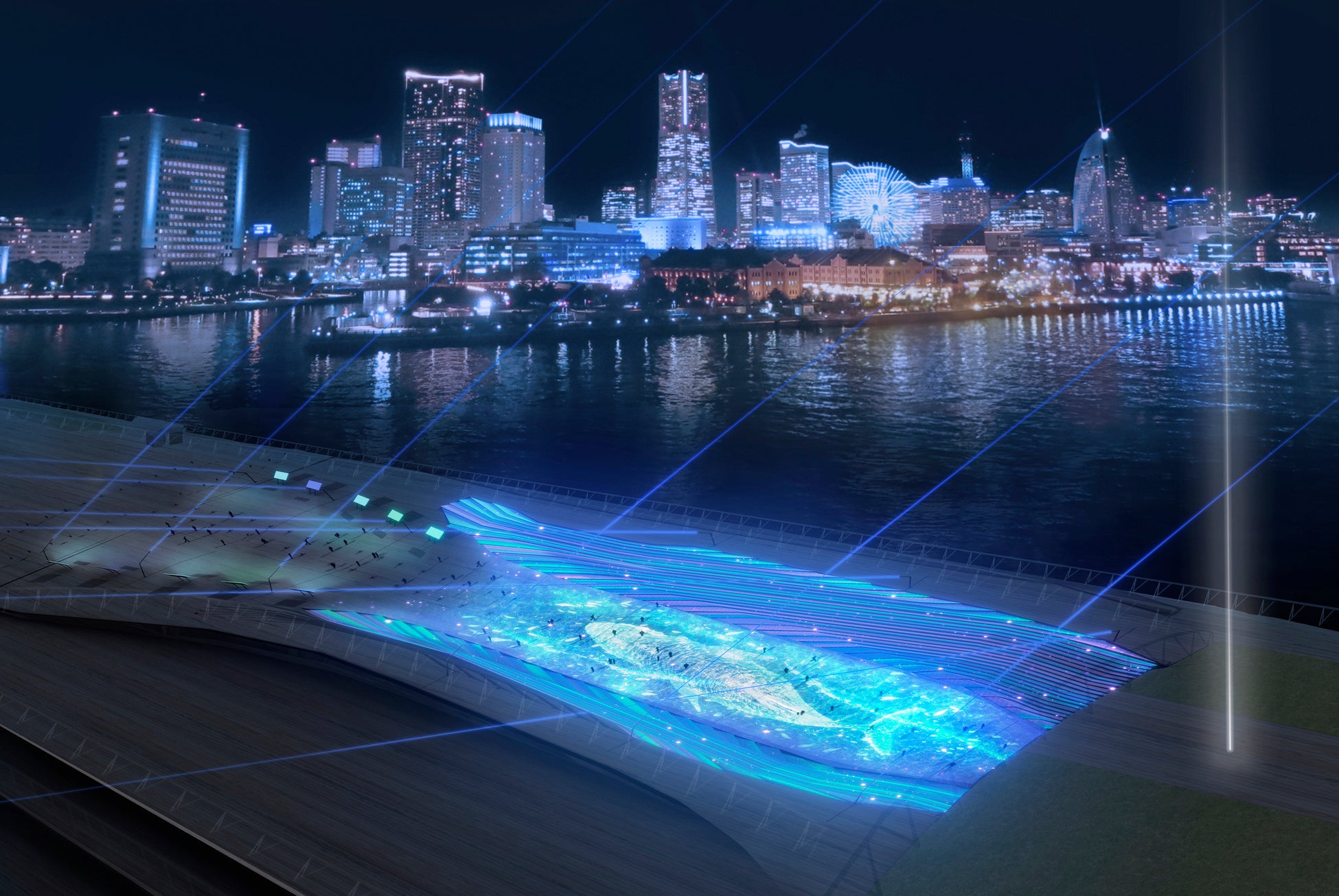 夜の横浜イルミネーションイベント「ヨルノヨ」でプロジェクションマッピングとスペクタクルショー見た 横浜・大桟橋。