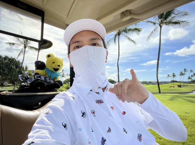 ハワイの海に向かってアロハポーズ。これ、僕です! 本人提供- スポニチ。