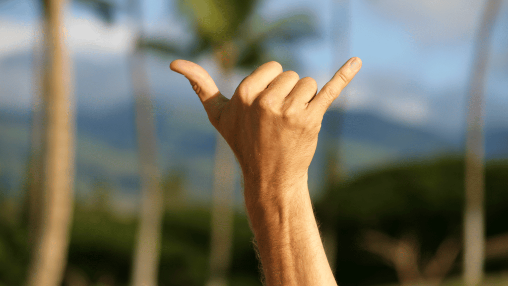アロハポーズは向きで意味が変わる!?『シャカポーズ』と『ハングルース』の意味と由来を解説します!!Hako-Boarders。