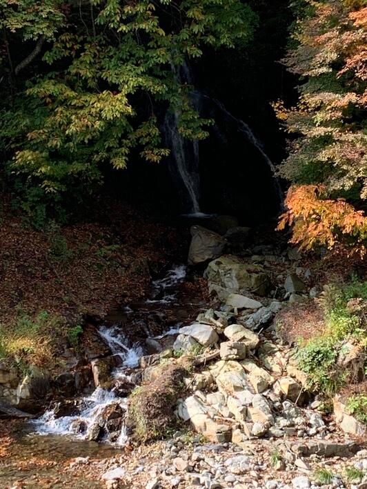 桃太郎の滝は四万温泉柏屋旅館のすぐ近く、お散歩に。