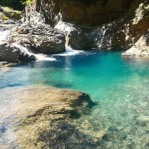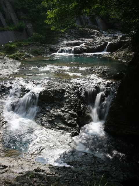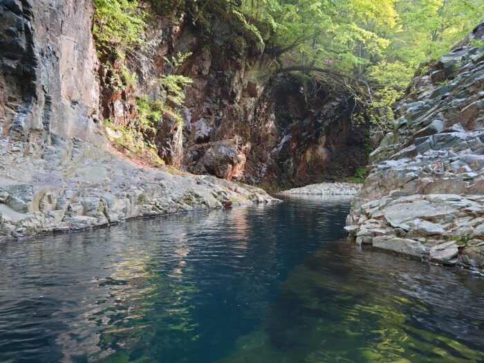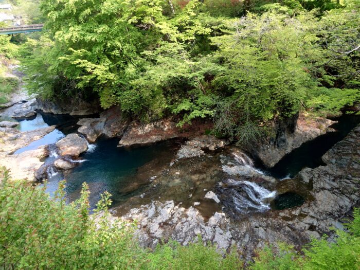 四万ブルーが美しい!!群馬県の四万の甌穴、桃太郎の滝トリドリ。