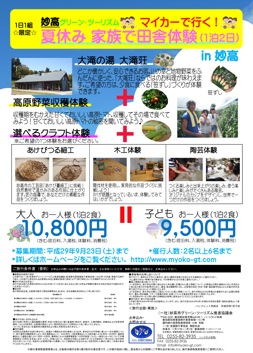夏休み田舎体験チラシほてる木の芽坂さま 南魚沼市– 南魚沼デザイナーアカネデザイン 制作事例。