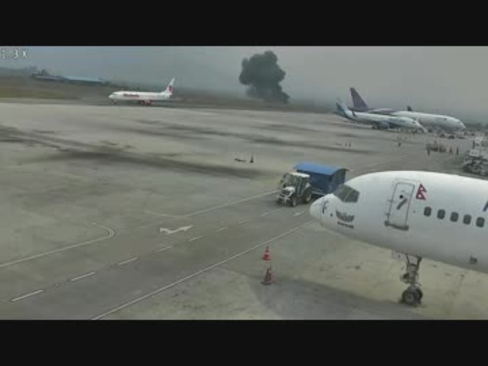 USバングラ航空211便着陸失敗事故の監視カメラ画像 - ニコニコ動画。