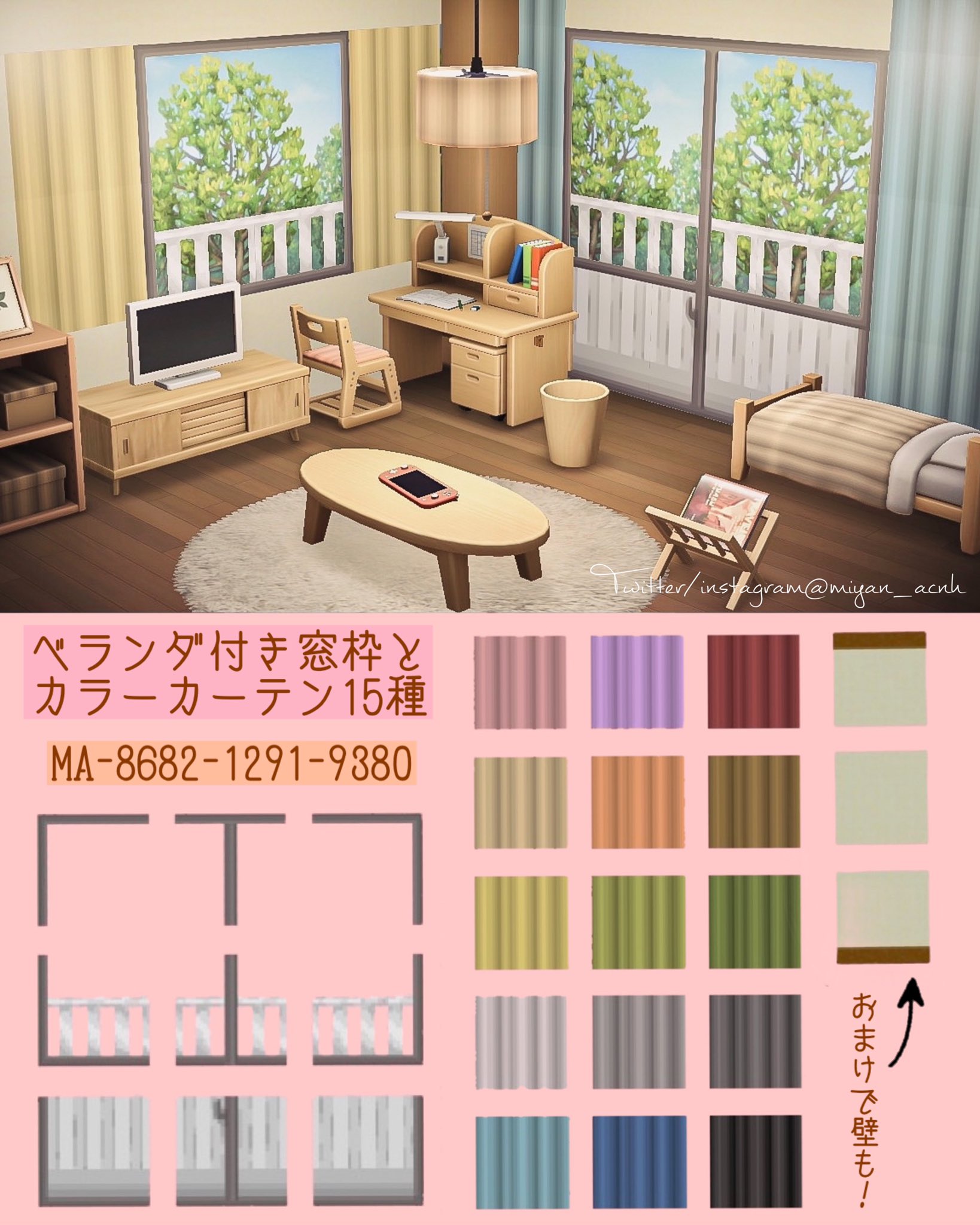 あゆむ on X: "ちっこうウォールステッカーのリメイクで使える柄カーテンの窓とブリックタイルを作りました。ブリックタイルは「かべにはる」で貼ることも出来ます。よかったら使ってください☺️ リプに使用例つなげます。あつ森あつまれどうぶつの森マイデザイン。