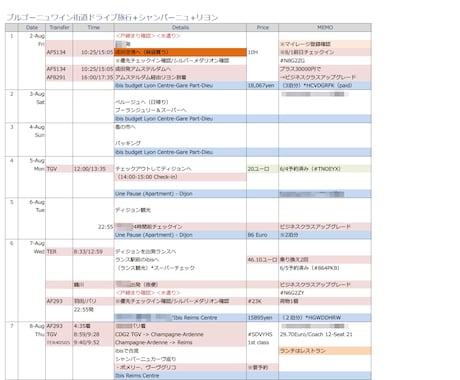 旅行の行程表を作ったらテンションが上がる件 - 備忘録。