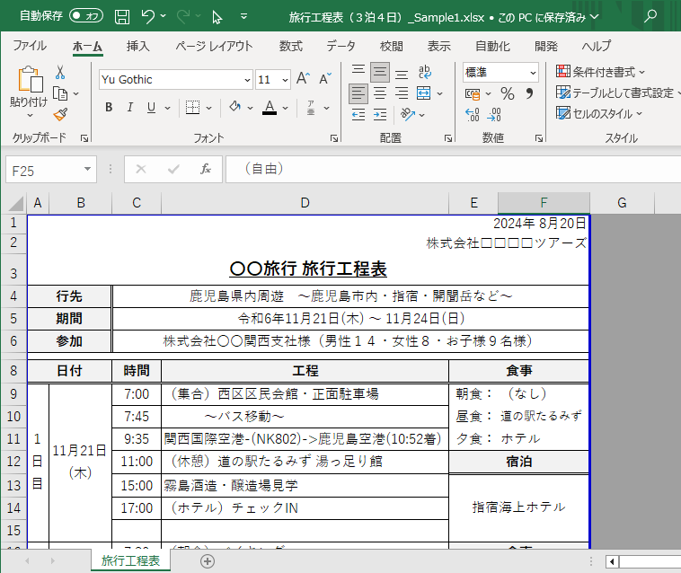 旅行計画書・旅行工程表ExcelとWordのテンプレートが無料です。