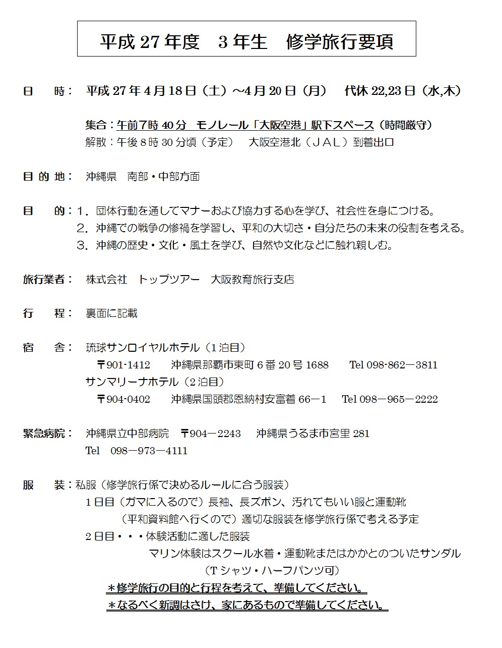 修学旅行1日目行程表福島県耶麻郡猪苗代町立猪苗代小学校ホームページ。