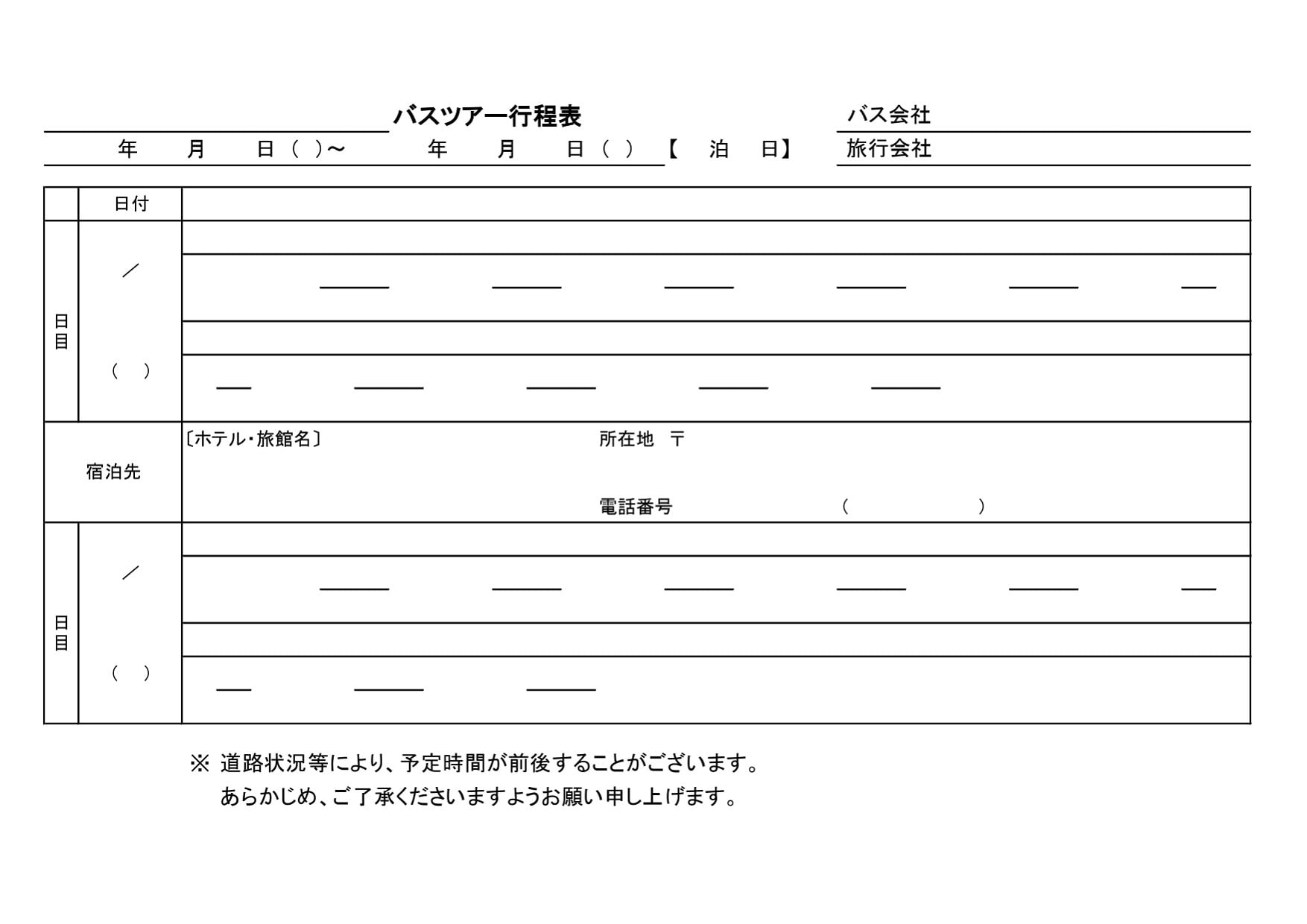 旅行スケジュール ホテル・訪問先などメモ免费 行程表。
