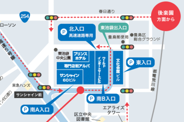 首都高速からサンシャインシティ 池袋 駐車場へダイレクトに入る方法。