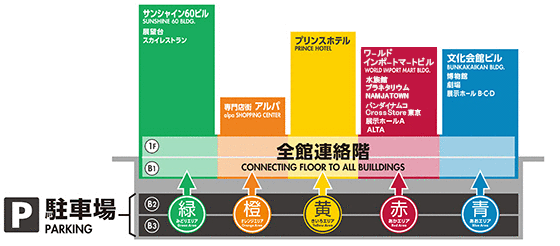 サンシャイン60フロアガイド・アクセス・駐車場東京ビルマップ。