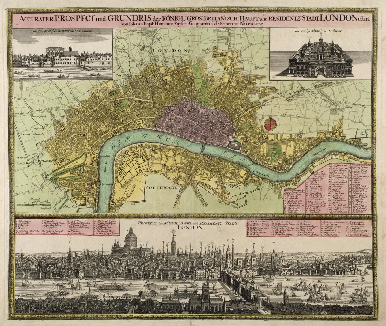 ロンドンの地図と展望、c.1710 手描きの彫刻。