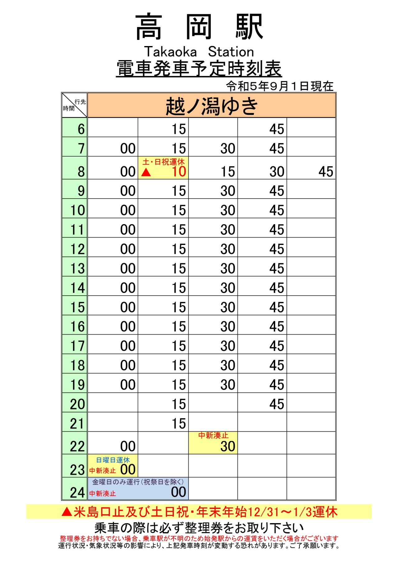 路線バス 2024年度 年末年始の運行ダイヤについて。