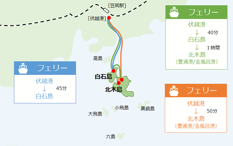 笠岡伏越港フェリーのりば」 港 の時刻表 アクセス。
