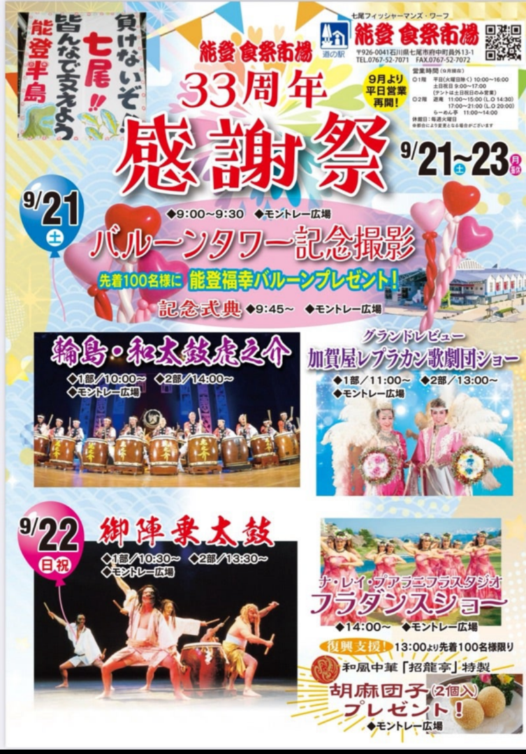 お知らせ能登食祭市場石川県七尾市道の駅・みなとオアシス七尾フィッシャーマンズ・ワーフ。