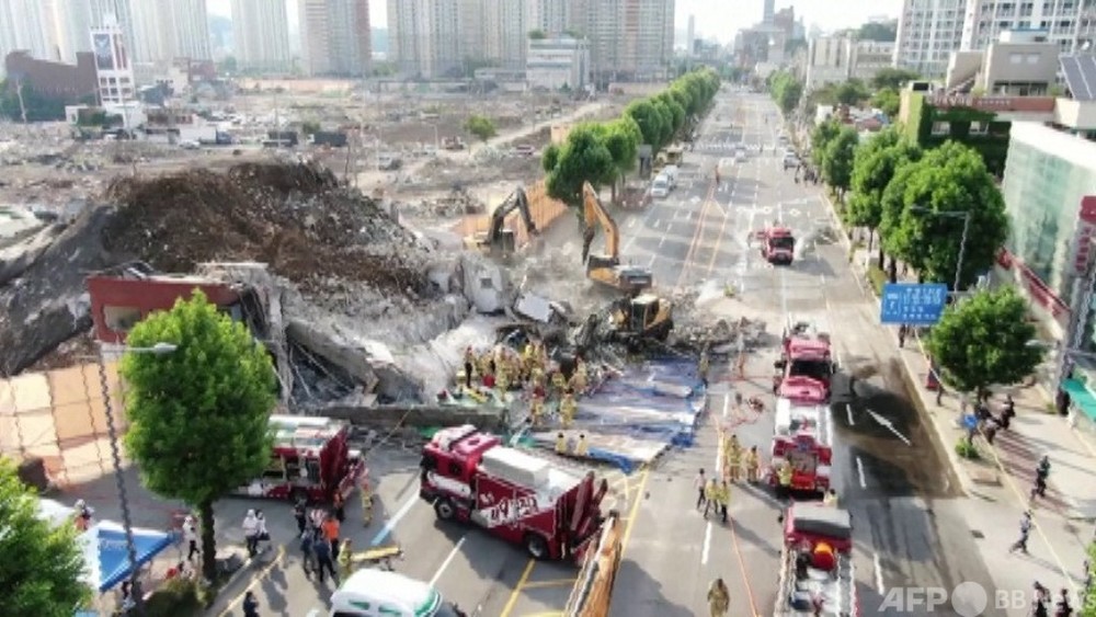 解体中のビル倒壊でバスが下敷きに、34人死傷 韓国 - CNN.co.jp。