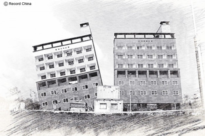 韓国でビルが突然30度以上傾く、手抜き工事が原因か―韓国紙。