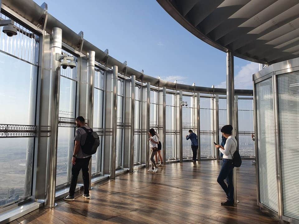 ドバイ旅行 ブルジュハリファ高さ585m156階の展望台。