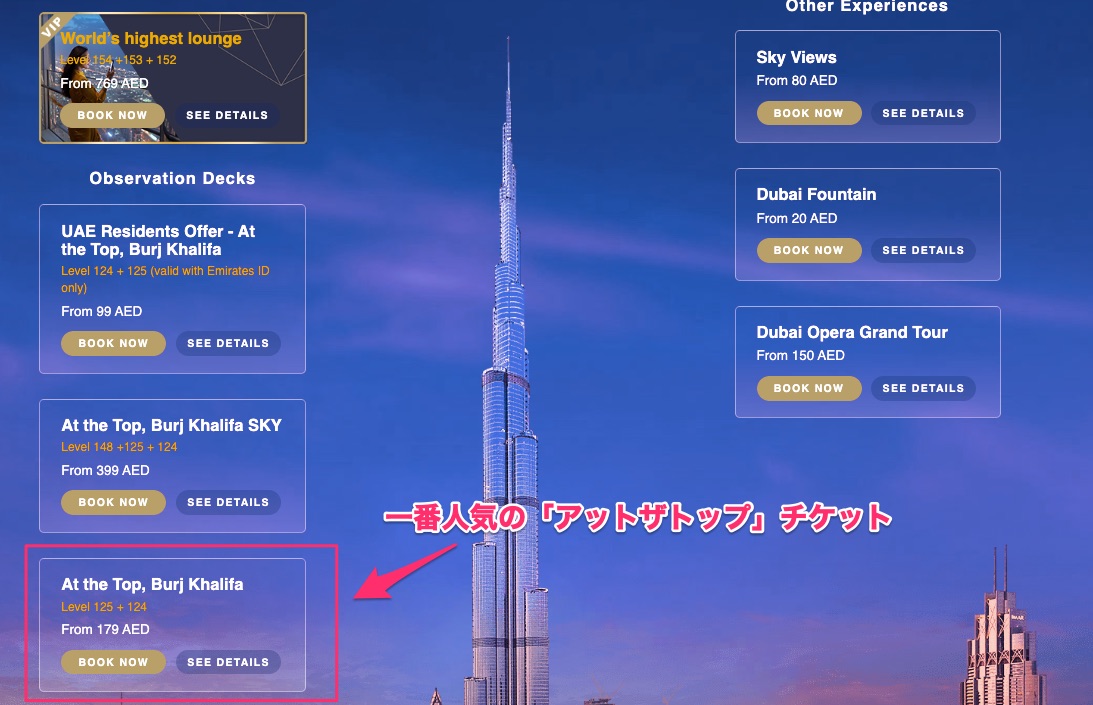 ドバイのブルジュハリファが最高だったので、チケットの種類や予約方法を説明するよ!おしるこトラベル。