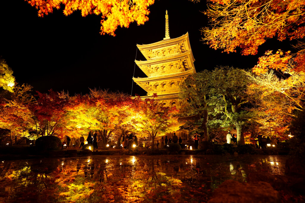 京都 東寺の紅葉2024年版 見どころは五重塔のライトアップ!混雑情報やアクセス方法を徹底解説。
