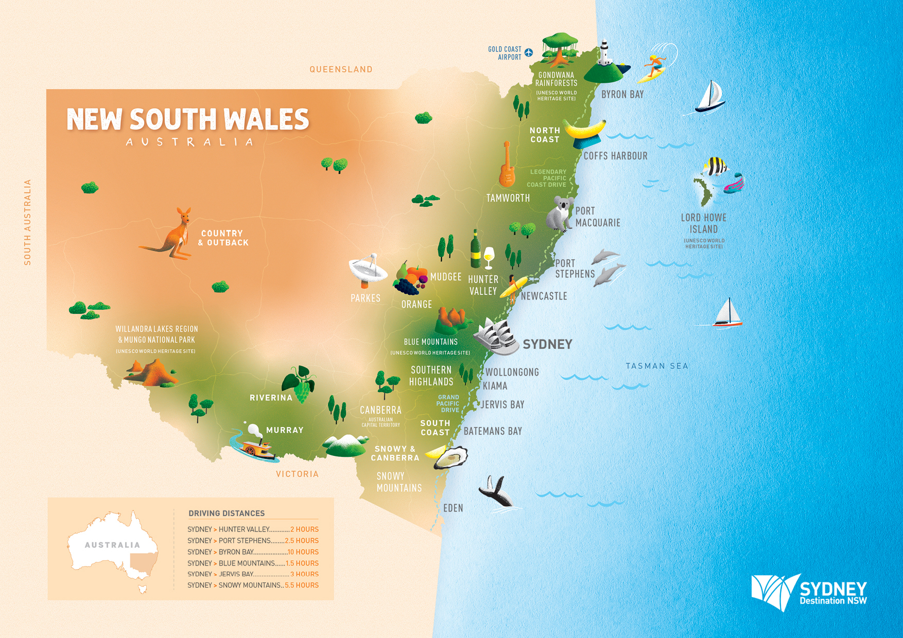 ニューサウスウエールズ州地図 - 旅行のとも、ZenTech。