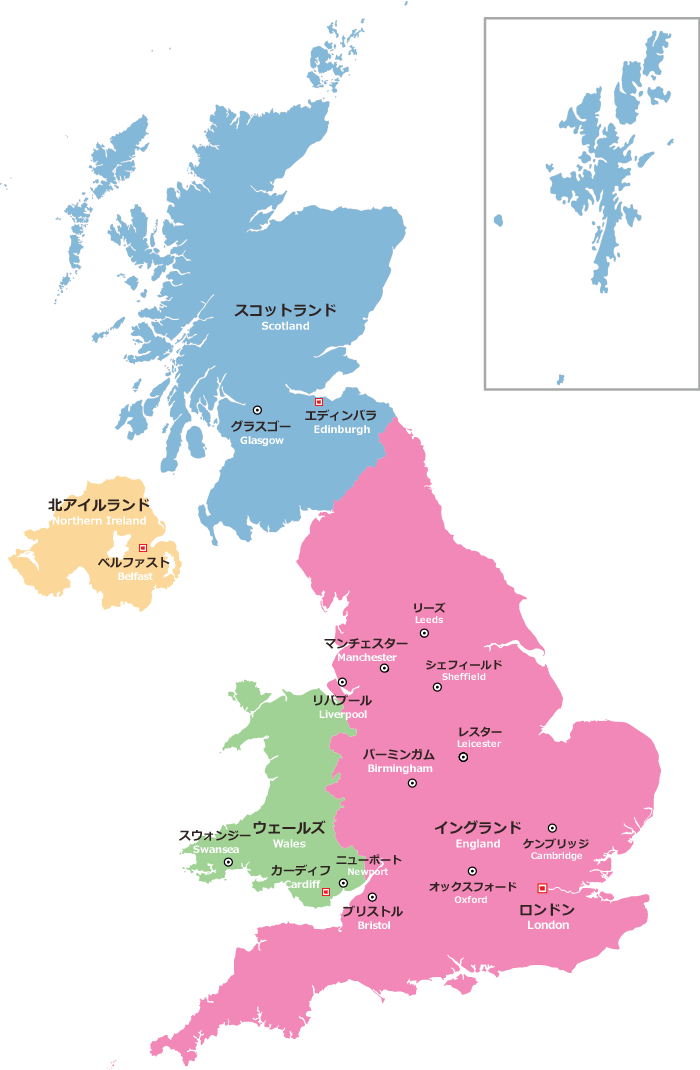 4つの地域と主な都市 イギリス留学手数料無料の海外留学推進協会。
