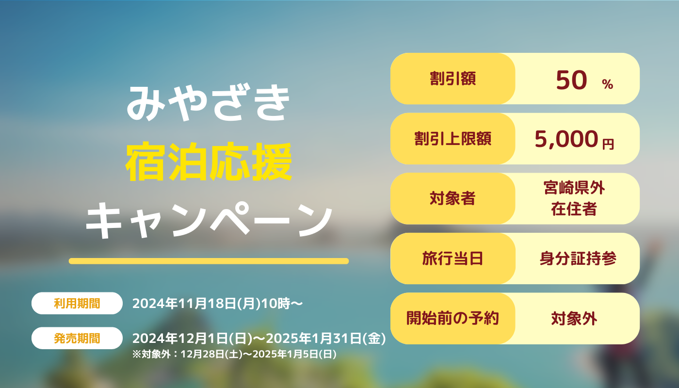 2025年 宮崎県の旅行支援「みやざき宿泊応援キャンペーン」1月31日まで 宿泊割引クーポンまとめホテル・旅行クーポンメディア。