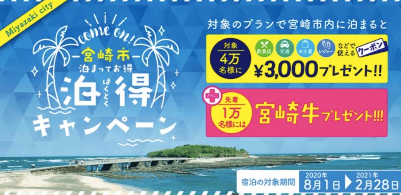 宮崎県、独自の旅行支援で「みやざき泊まっ得ーポン」配付。平日1泊3000円 休日1泊2000円 - トラベル Watch。