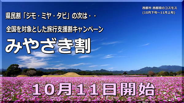 宮崎県独自の観光需要喚起策「秋冬泊まっ得!welcomeみやざきキャンペーン」を実施!宮崎県のプレスリリース。
