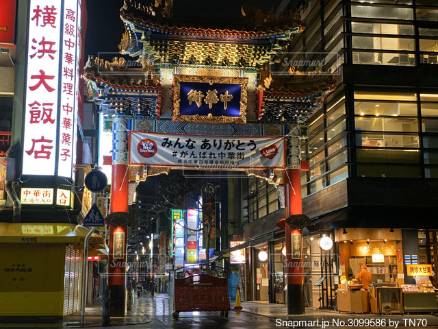 夜の横浜中華街の写真・画像素材-Snapmart スナップマート。