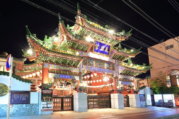 夜の横浜中華街の善隣門 横浜 神奈川県 11002018648。