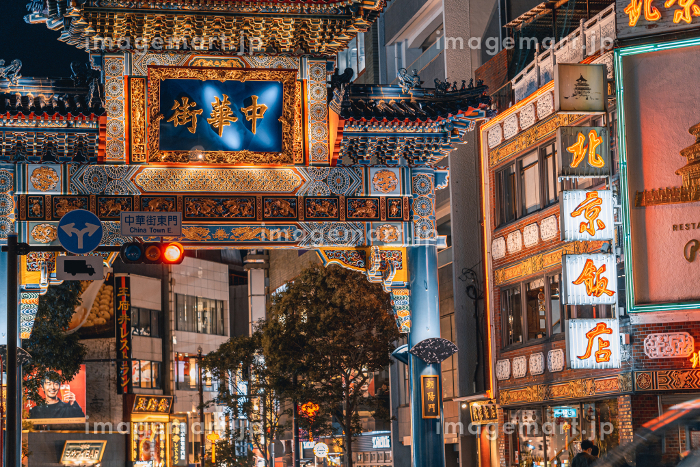 横浜中華街夜景 写真素材200815- フォトライブラリ。