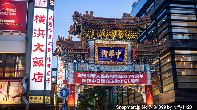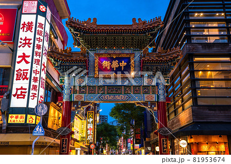 夜に散策する横浜中華街の景色の写真素材81458711- PIXTA。