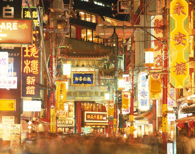 横浜中華街の夜景 10785000264 の写真・イラスト素材アマナイメージズ。