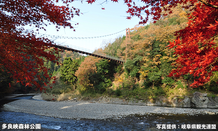 つり橋や清流が彩る絶景スポット!岐阜県・大垣市の「多良峡」で紅葉狩りを楽しもう!トリドリ。